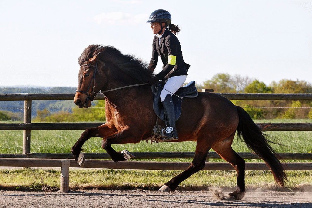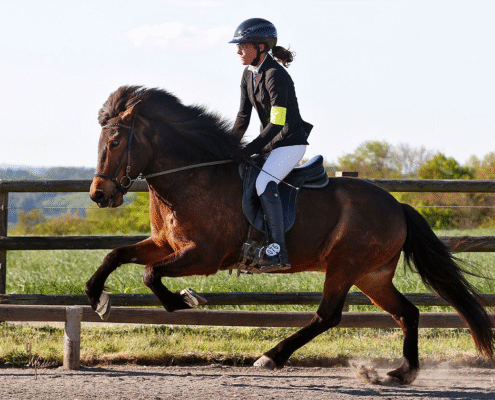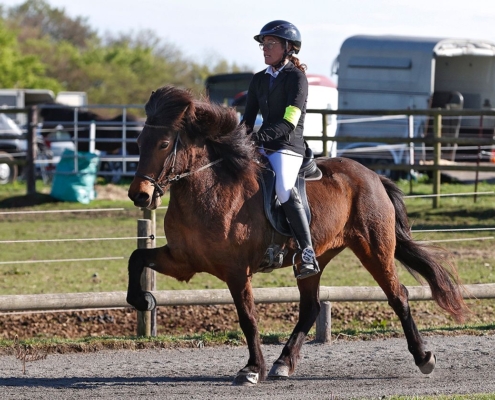 Urdur ist eine tolle Tölterin. Sie besitzt ein sehr schickes und akzentuiertes Arbeitstempo sowie ein absolut geniales schnelles Tempo. Auch den Aufgabenteil „Tempounterschiede“ beherrscht sie gut und sicher. Sie ist bereits in der Prüfung T3/T1 gestartet und hat viel Talent für diese Prüfung. Urdur besitzt einen sehr schönen und raumgreifenden Trab, einen fantastischen, gut durchgesprungenen Galopp und einen hervorragenden Schritt, den sie auch in Prüfungssituationen sicher und unberührt vorweisen kann. Alle Voraussetzungen für hohe Noten in der V1 sind also gegeben.